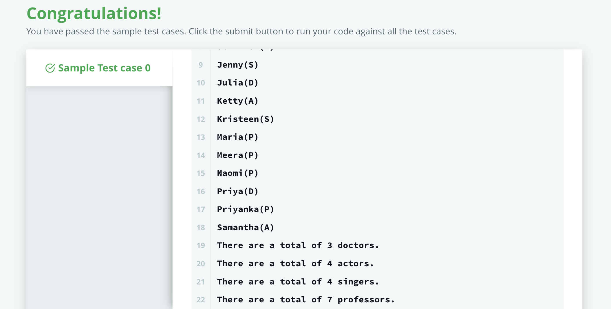- 중간 중간 꽤 에러를 많이 봤습니다.. 뭐가 틀렸는지 몰라서 한참 헤맸는데 알고보니 직업정보는 소문자로 출력하라는 조건이 있었어서.. OTL. lower()를 통해서 조건에 맞게 다시 설정해주었더니 Correct 메시지가 뜹니다. 조건을 잘 보는 것이 중요한 싸움인듯 합니다.