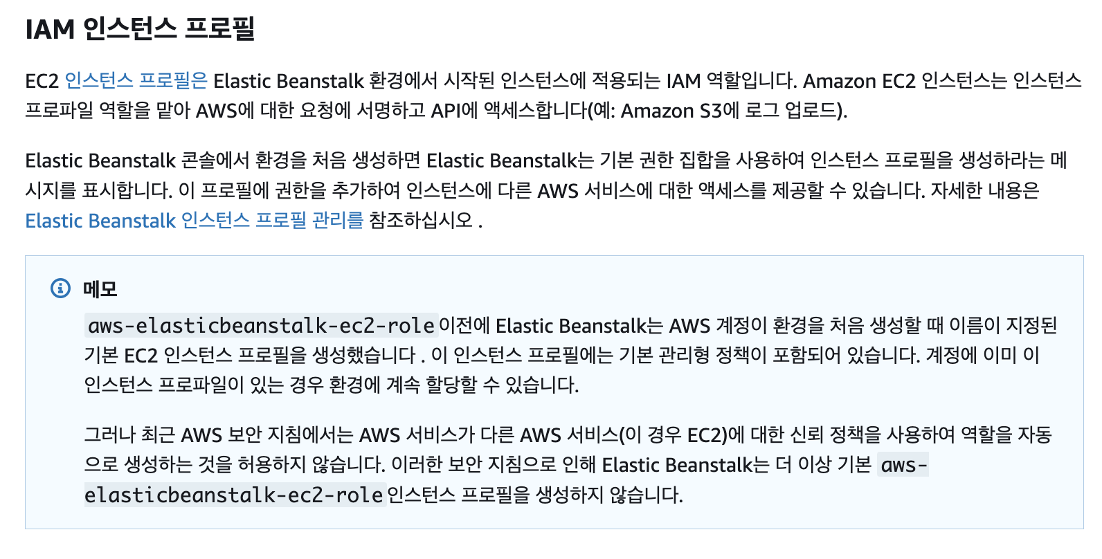 (참고문서: https://docs.aws.amazon.com/elasticbeanstalk/latest/dg/iam-instanceprofile.html)